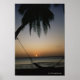 Silhuetted empty hammock at sunset poster