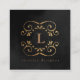 Silk black gold faux foil flourish monogram square business card