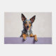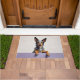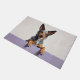 The soft misty lavender-gray background adds a calm and sophisticated touch, perfect for welcoming entryways. Designed with extra space at the top and bottom, it allows easy personalization with names, welcome messages, or custom text—making it ideal for unique dog-themed doormats and thoughtful gifts.