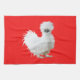 Silkie Chicken on Red Tea Towel