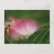 This floral postcard features a silky pink and white Mimosa flower with leaves on a natural background.