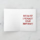 This card is great fun and good quality. I loved the humour inside and on the back. There is the opportunity to change the orientation of this card from landscape to portrait, which I did. It is relatively straightforward to amend the typeface to fit the new orientation. It was well packaged with no plastic. The printing on this card is excellent.