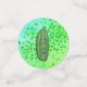 This table confetti has a silly big green pickle man in brown suit.  The pickle has a face with a surprised facial expression on a green background.  Medium circles are green with 30th Birthday.  Small are green blue with green dots and a pickle.  Customise your text on all the circles with the templates.