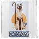 "Cat & Mouse Games!" This very silly shower curtain features a delightful cartoon scene: a nervous mouse, cheese in hand, stealthily sneaking past a unsuspecting cat. This playful design will add a touch of whimsy to your bathroom.