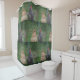 This shower curtain features a funny scene with a barred rock hen and a buff orpington.