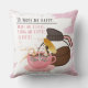 This silly throw pillow is for die-hard coffee lovers only! Features a girl sitting in a coffee mug with the words: "To make me happy: make me coffee, bring me coffee, be coffee ..." She's lounging under an umbrella in a pink mug, holding a pink coffee mug, with a coffee carafe behind her.