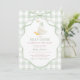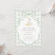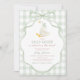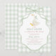 A sweet and whimsical baby shower invitation featuring a watercolor goose, soft sage gingham background, and elegant ribbon details. Perfect for a gender-neutral baby shower, brunch celebration, or classic spring gathering. Fully customizable with your event details.