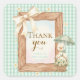 Seal your party favors or thank you envelopes with the delightful charm of these Silly Goose Baby Shower Stickers. This whimsical design features a sweet watercolor gosling standing under a green checkered umbrella, tucked beside a rustic basket filled with fresh daisies. The central artwork is framed by a realistic wood-grain border and topped with a large, creamy silk bow for a high-end, boutique feel.