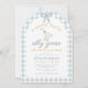 Perfect for hosts looking for a classic goose baby shower theme, this invitation is ideal for cottagecore baby showers, preppy baby celebrations, blue gingham baby showers, and storybook inspired events.