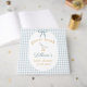 Designed with customizable space for the mom to be’s name and baby shower date, this custom baby shower sign in book becomes a meaningful keepsake you will treasure long after the party ends. The classic blue gingham pattern paired with the sweet goose illustration creates a timeless look that works beautifully for a preppy baby shower, cottage inspired celebration, vintage baby shower theme, or storybook baby shower.