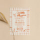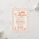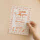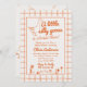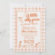 If you looking for an elegant unique and easy customisable gender neutral baby shower invitation this is perfect for you. As you see it features a retro handwritten script of a little silly goose is almost there in orange. And hand drawn goose on. And orange border frame and orange chequered squares. All orange and on creamy background. Very easy to customise and use. So grab it and make your invites very engaged.