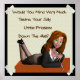 Business woman laying on a desk with the text "Would you mind very much taking your silly little problem down the hall?"