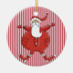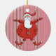 Silly Santa against a red and white striped background on a holiday keepsake ornament you'll love for years to come!