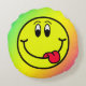 Silly Tongue Out Smiling Face Emoji Rainbow Design Round Pillow