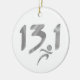 Non-metallic silver-grey 13.1 half-marathon with running dot symbol.