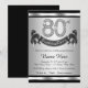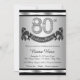Silver 80th birthday party invitation with diamond numbers and happy birthday banner on a silver and black background. This beautiful silver 80th birthday party invitation is easily customised for your event. You can change the background colour. This striking design works well for a man or woman. This is a printed design with no real diamonds, silver, glitter, etc.