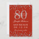 Silver 80th Birthday Party Save Date Details Red Invitation