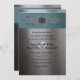 Shimmery aqua blue and silver wedding invitation, shown on metallic ice paper. Very fancy, very pretty.