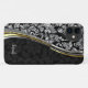 Modern and elegant silver-grey and black floral damask with a silver and gold wavy stripes. Optional monogram