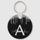Silver and Black Girly Sparkly Glitter Monogram Key Ring