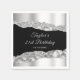 This elegant and glamourous birthday party napkin features silver faux glitter glam tears on a black background. The text combines handwritten script and modern sans serif fonts for a classy and sophisticated look.