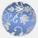 Silver and Blue Damask Design Classic Round Sticker