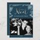 Silver and Blue Leaves Joyeux Noël Photo Holiday Card