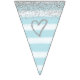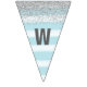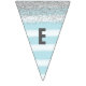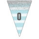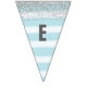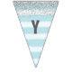 Banner with "welcome baby" wordings, faux silver glitter design and blue stripes pattern background.