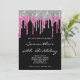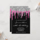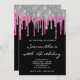 Silver and Deep Pink Glitter Drips Black Birthday Invitation