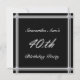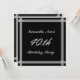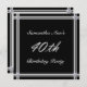 This stunning, feminine invitation for an 40th Birthday Party has a black background with bands of piping in metallic silver grey tones. Sparkling diamond gemstone effect emblems decorate the corners and the text: 40 th in a decorative silver font adorns the centre. Other sizes and colours are available in store.