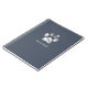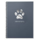 Luxurious silver paw print logo on an elegant dusty blue background. This spiral notebook has a line of customisable text to personalise any way you like. Perfect for any pet related business or animal lover.
