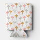 This can cooler has a Boho design of three leaves together with three dots below them in silver, gold, and pink gold.
