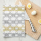 An elegant pattern of silver and gold geometric shapes, linked in a series of linear, lace streamers.