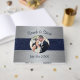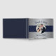 A modern and elegant wedding guest book for your big day. Add your own photo to this guestbook and personalise the names and wedding date. The design features a silver background, the photograph is framed with a dark blue sparkle border.