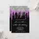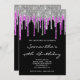 Silver and Magenta Glitter Drips Black Birthday Invitation