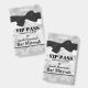 Handsome all occasion party accessory badge done in a silver and white marbled looking background, with graphics of a silver glittery look, across the top and bottom. Graphics of a black ribbon and bow, decorates the top of the badge. Black custom text is ready to personalise for your event. Great for birthday parties, Bar Mitzvahs, bachelor parties and more.