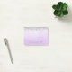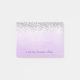 Post It Notes with faux silver glitter design and ombre purple watercolor background.