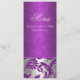This elegant silver and purple damask menu card on basic paper matches the invitation and other items shown below. If you require any other matching items, please email your request to niteowlstudio@gmail.com.