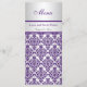 This silver and purple damask menu card matches the invitation and other items shown below. It is designed on a rack card with a glossy front and back with a matte finish. If you would like a menu card on invitation paper to match your invitations, or of you have any requests for additional items or changes, please email niteowlstudio@gmail.com with your request.
