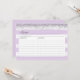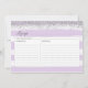 Recipe card with faux silver glitter design and purple stripes watercolor background.