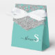 Silver and Teal Monogram Aqua Blue Sparkle Favour Box