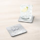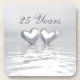Drink coasters with my silver colored design of two silver hearts floating on water. Customizable text says "25 Years".