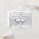 A silver-coloured 25th silver anniversary invitation with two silver hearts floating on water. Customise the sample text on the back with your own information for your event.