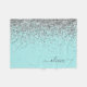 Silver Aqua Teal Blue Girly Glitter Monogram Fleece Blanket