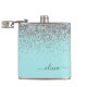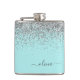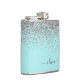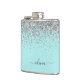 Silver Aqua Teal Blue Girly Glitter Monogram Hip Flask