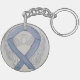 The guardian angel keychain features the art of a silver awareness ribbon angel painting. The silver awareness angel ribbon art keychain can be customised with personalised messages to make great cause keychains for fundraisers, awareness gifts, or other special events or occasions.