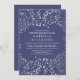 Baby's breath birthday party invitation / silver foil effect / background - navy blue
