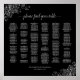 This beautiful wedding seating chart features pale gray text on a black background with seating assignments for 200-240 guests. It features a simple yet stylish and elegant design with ornate decorative faux foil silver filigree in the corners. The title is written in fancy script calligraphy and reads: Please find your table.