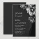 This elegant dark moody floral wedding invitation features silver gray flowers on a black background. Dark aesthetic till death do us part wedding invitation.