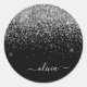 Silver Black Girly Glitter Sparkle Monogram Name Classic Round Sticker